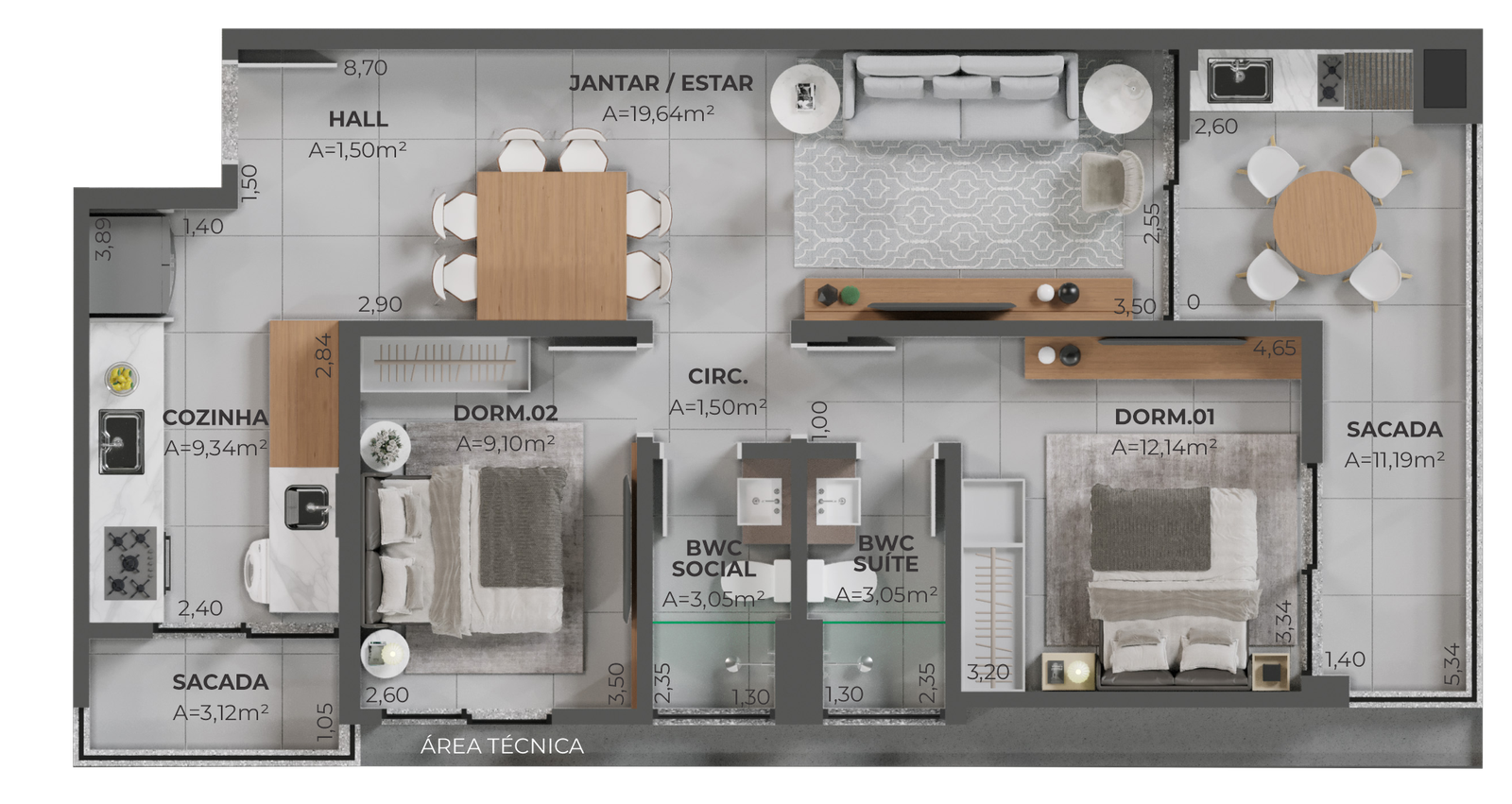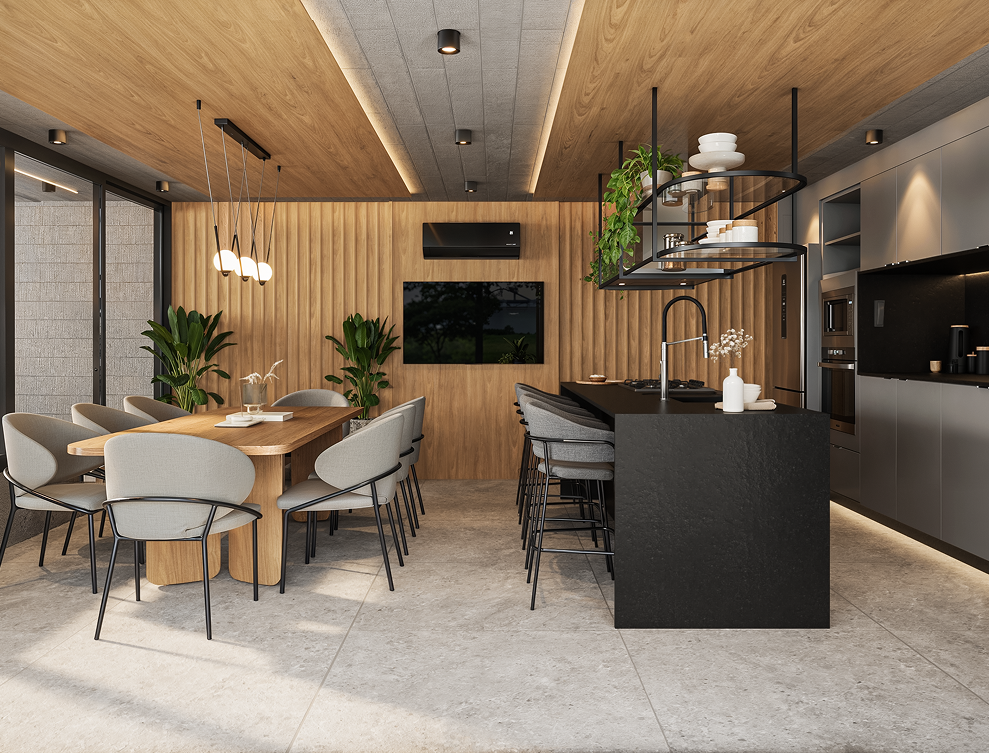 Ambientes funcionais que unem lazer e praticidade no dia a dia.
