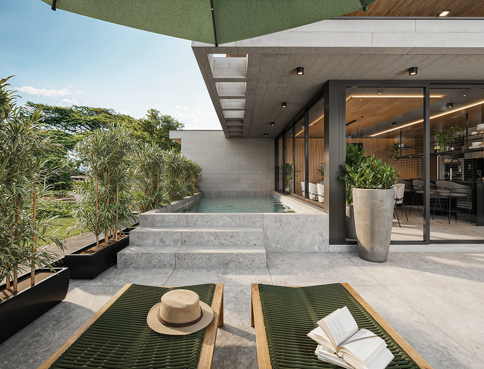 Cada ambiente foi cuidadosamente projetado para garantir bem-estar e exclusividade. No Terraço do Lago, a paisagem se integra ao cotidiano, transformando momentos simples em experiências únicas.