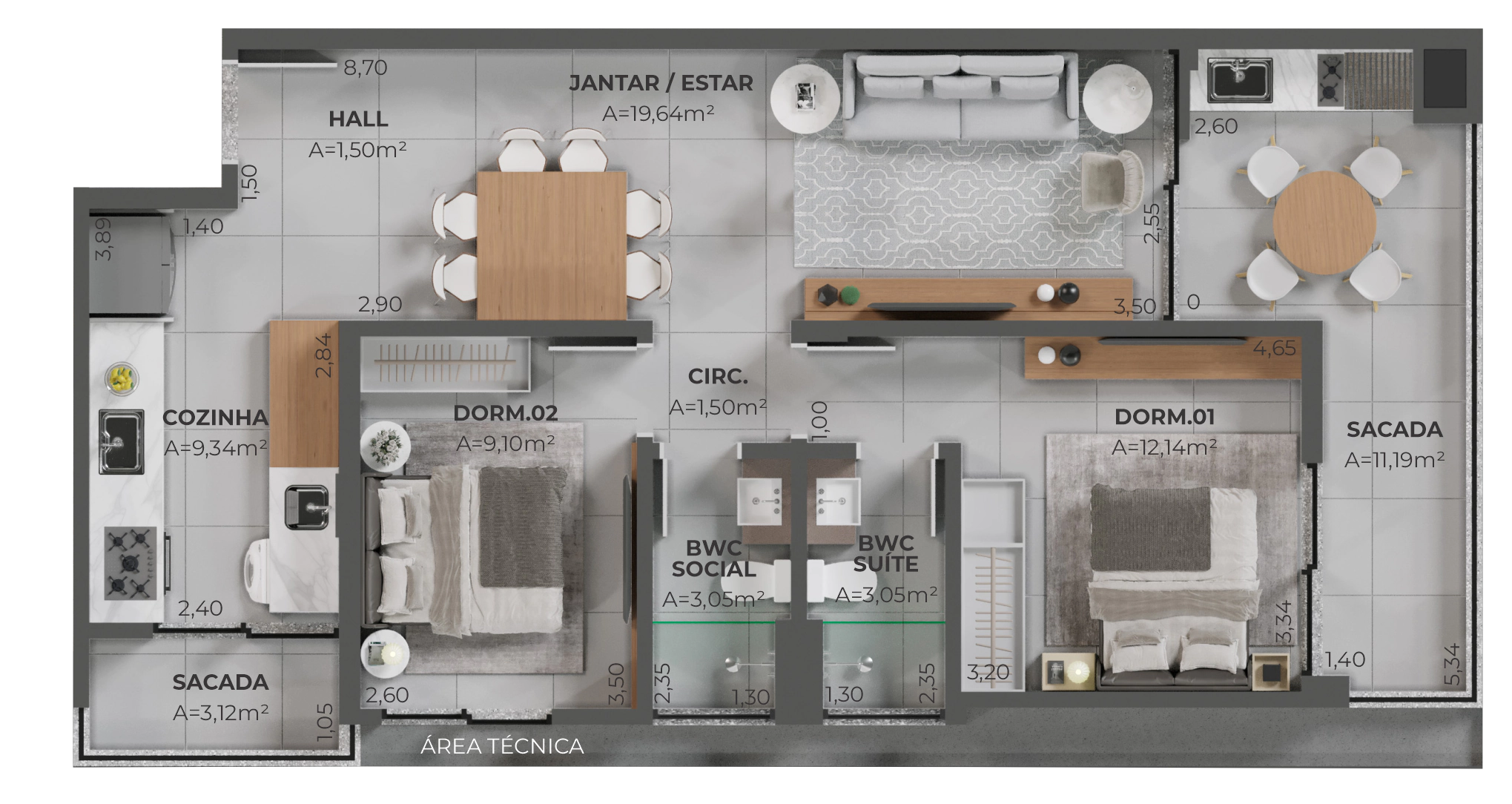 Ambientes funcionais que unem lazer e praticidade no dia a dia.